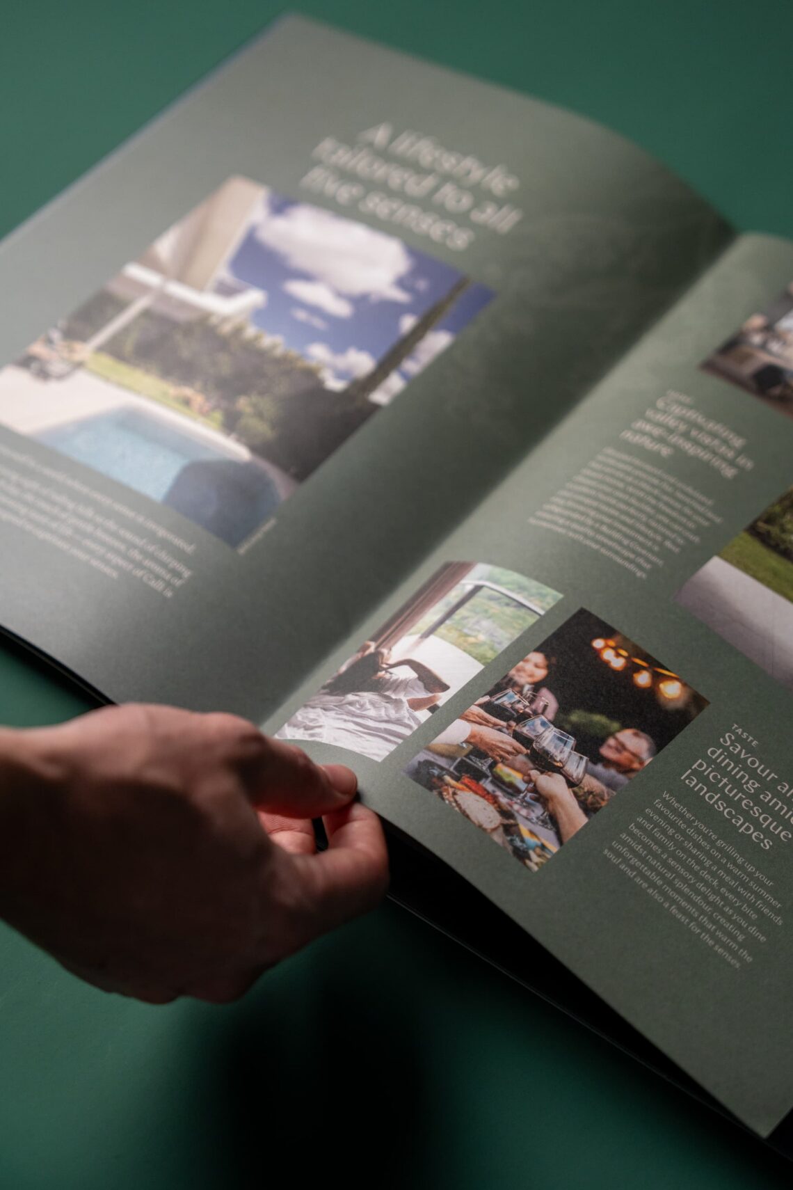 Using local photography, we crafted a brochure to captivate prospective buyers with Calli’s charm whilst taking them on a journey of the five senses.
